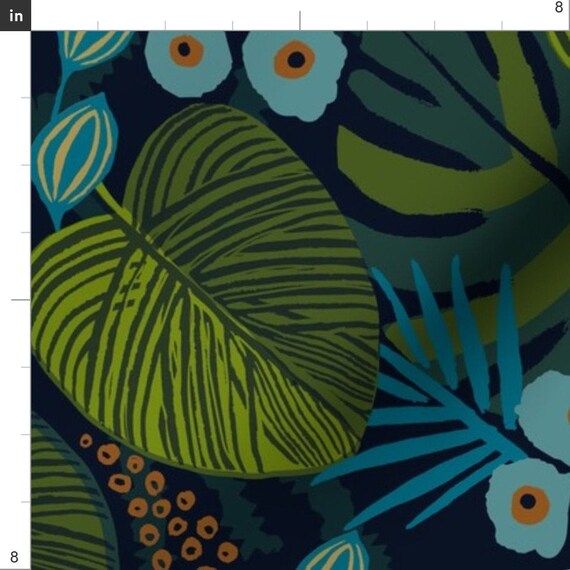 Night Jungle Fabric Moody Tropical Fun In Blue Green Teal Etsy